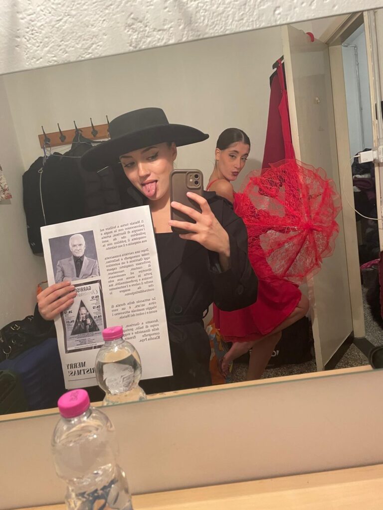 Il pomeriggio l’abbiamo passato a fare le prove per adattarci al meglio al palco e capire gli spazi, spostamenti e cambi veloci di vestiti.